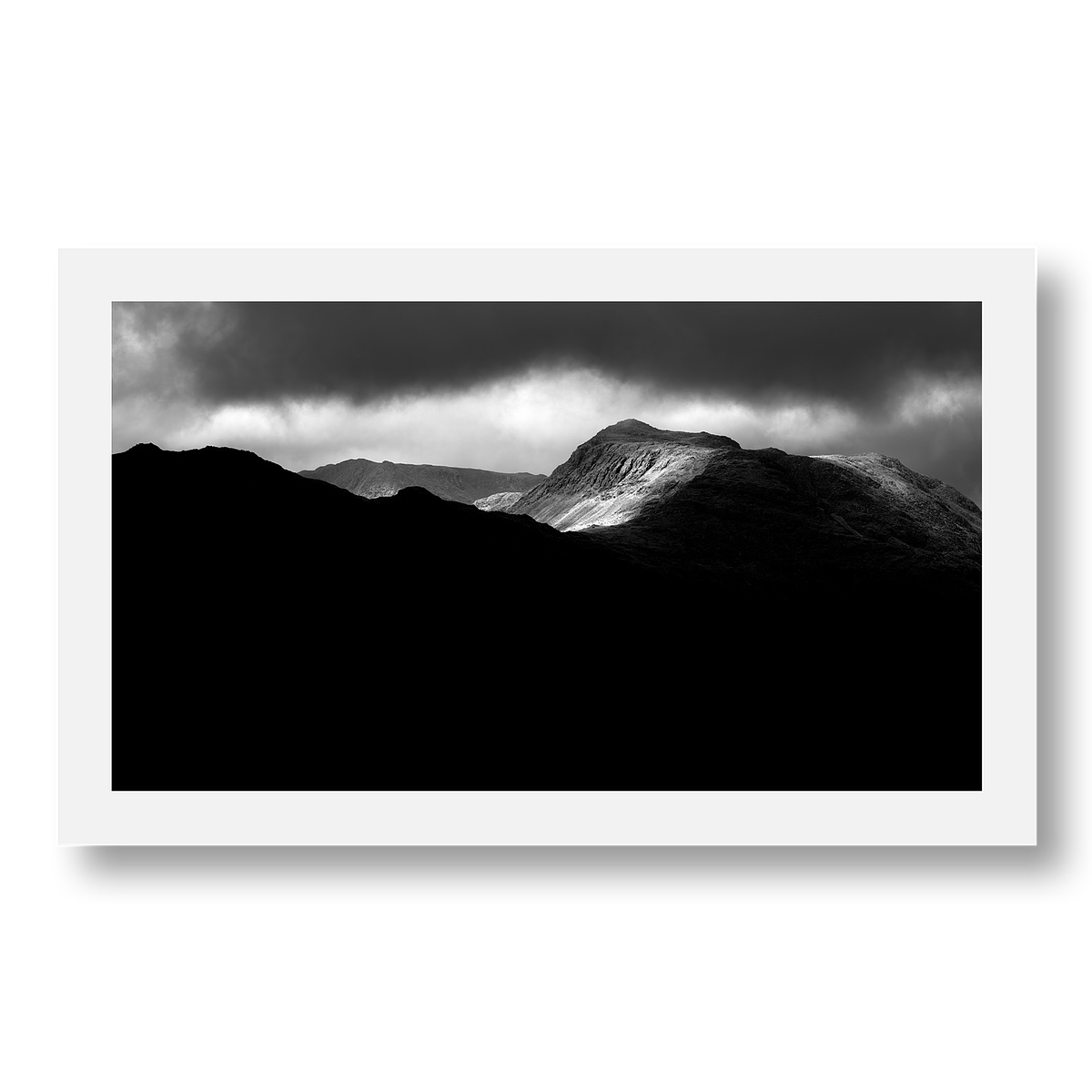 Into Darkness captures Bowfell in the Lake District being consumed by shadow as dark storm clouds roll in.